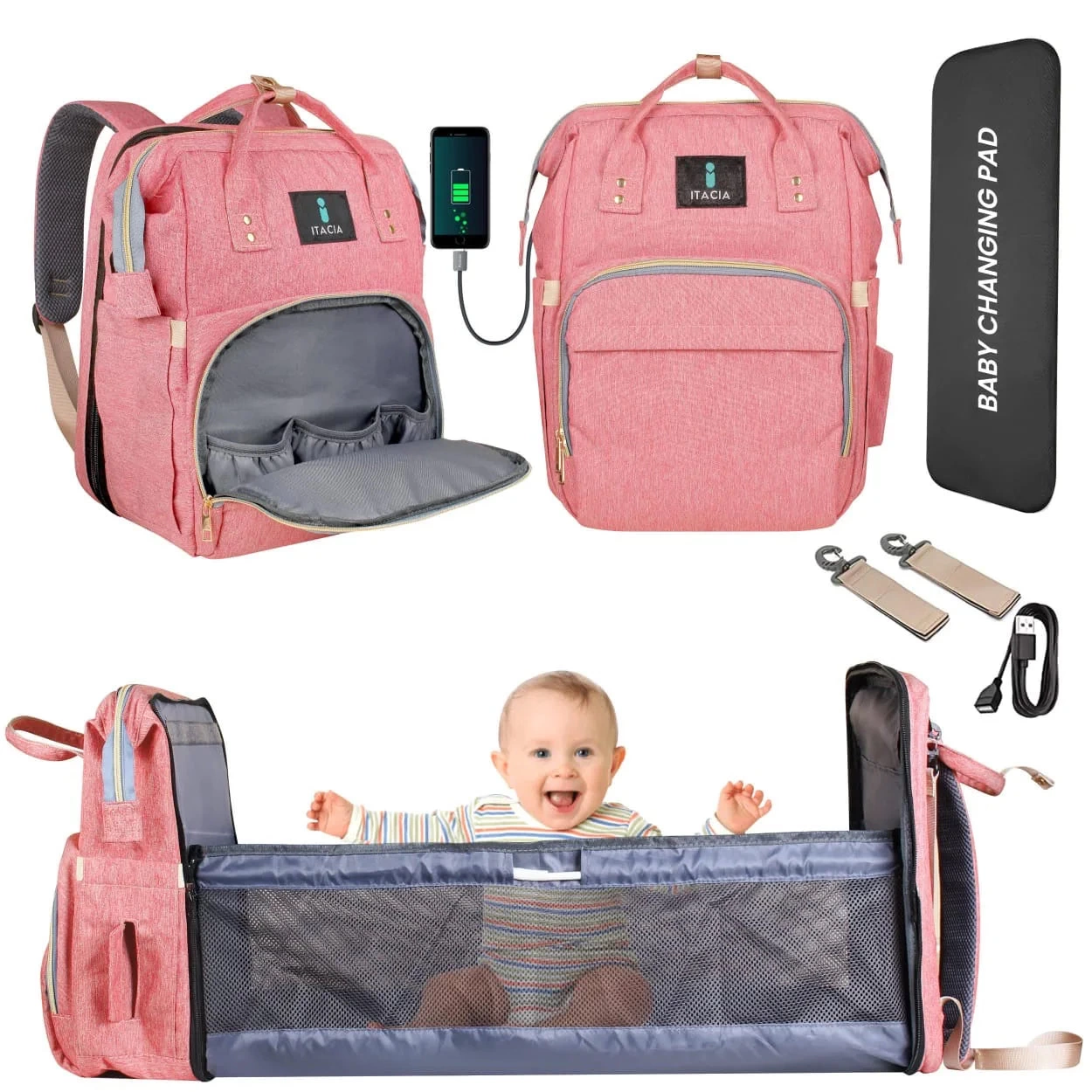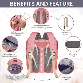 What’s Included: 1 x Diaper Bag with Portable Bed, 1 x Changing Pad