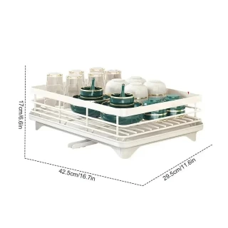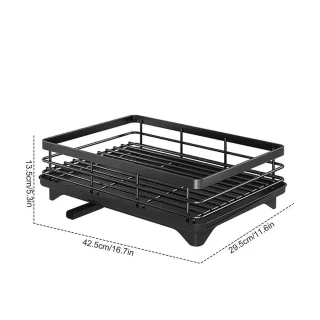 Bullet Points: 1.Heavy-Duty Support: Our dish drying rack is built to withstand heavy usage. Crafted from thick carbon steel materials, it is sturdy, and durable, and can securely hold your dishes without wobbling or tipping over. Enjoy long-lasting support for your dish-drying needs. 2.Helpful and Useful: Prevent messy counters in your kitchen by using this anti-rust dish rack that features a built-in moisture drain pipe for quick drying. 3.Convenient Utensil Access: Our dish drying rack features a well-designed integrated structure, with accessible zones for your utensils. Save time and effort with ease. 4.Wide Range of Uses: Keep your countertop organized with our widely applicable dish drying rack that can efficiently dry saucers, cups, bowls, plates, and dishes. 5.Fine Craftsmanship: This dish drying rack is easy for you to adjust and clean, as it has a detachable upper layer that can fit different sizes of dishes. It also helps you maintain hygiene in your kitchen by preventing water accumulation. Organize your kitchen with this durable and anti-rust dish rack! Its integrated design provides reasonable zones for cutlery and plates. The detachable upper layer provides additional space for larger items.