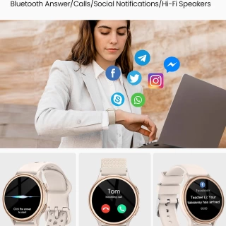 【Always Connected, Always You】: Stay effortlessly in touch with our elegantly designed Bluetooth smart watches for women. Answer and make calls directly from your wrist, thanks to the built-in microphone and HD speaker. Stay in the know with instant notifications from your favorite platforms like SMS, WhatsApp, Facebook, and Instagram. And with seamless AI voice assistant integration, controlling your watch is as simple as a command