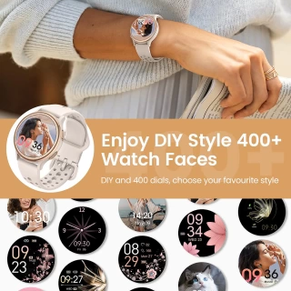 【Your Style, Your Life, Perfectly Connected】: Elevate your style with our sleek smart watches for women, featuring over 400 stunning watch face designs that effortlessly align with your outfit and mood. Customize your look with photo options, a chic woven strap, and two soft silicone bands. Whether you’re sweating it out at the gym, relaxing on the weekend, or dancing through the night, this isn't just an accessory – it's a statement of your unique style, seamlessly fitting into your world【Reliable Support】 With 2 years of worry-free support, our service team is always 24 hours online, ready to provide satisfactory solutions should the product doesn't fit or breaks within the warranty period