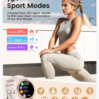 【70 Sports Modes, Waterproof Confidence】: Tailored to your active life, this fitness tracker smart watches for women offers 70 sports modes, from rowing and running to yoga and basketball. Detailed post-workout reports track your heart rate, steps, calories, and more, while its IP68 waterproof rating ensures durability during water sports like surfing or rowing.