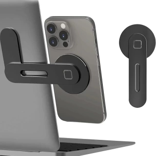 Magnetic laptop mount made with ultra-thin Aluminum Alloy frame and 3M adhesive can hold your phone tightly. It can be adjustable and conveniently folded and hidden behind the laptop for standby.